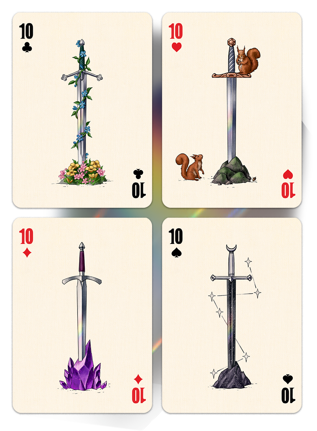 Every '10' card in our deck proudly presents an ornate sword, symbolizing strength, courage, and resilience - values at the heart of the LGBTQ+ community. These cards represent the fight for equality and the power within each of us.