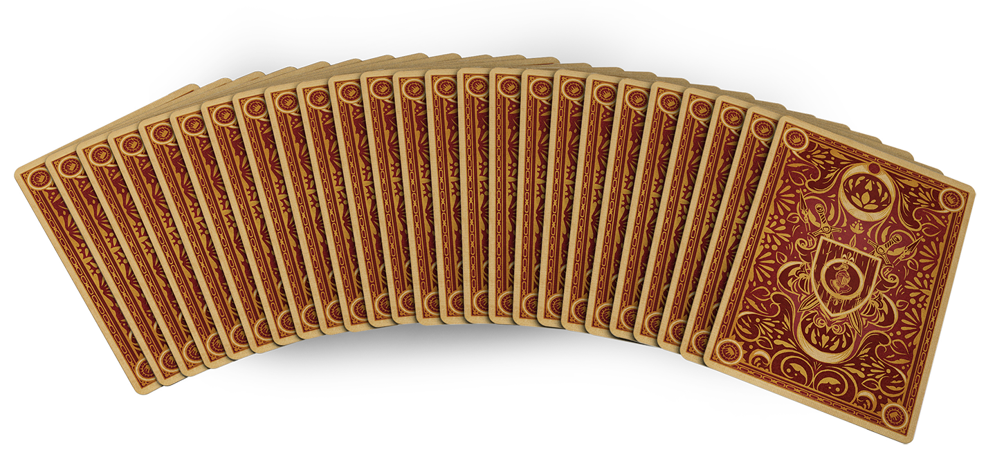 Take a peek at the card backs, and you'll be greeted with a grand medieval design in rich, deep reds.